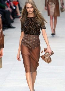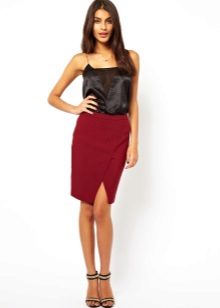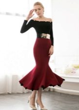 For evening outings, the ideal option for such a model is a hobble skirt.Its length drops 5-10 cm below the knees, while the skirt strongly fits the silhouette, creating a piquant image.