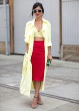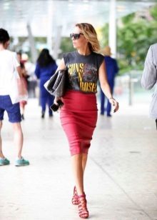 The sexiest red skirt is, of course, a short model of a pencil skirt (10-15 cm above the knee)! It is important to remember that only owners of perfect shapes can wear such a precious piece of toilet.