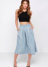 Skirt pants (culottes) as well scort (hybrid skirts and shorts) are no less relevant today. Apparently, this is the apotheosis of the century of emancipation. The broad concept of hip-hagers is not only skirts, but also low-waist pants. Different variations of such models are possible. Including, the most popular type of skirts today, which we will talk about in detail.