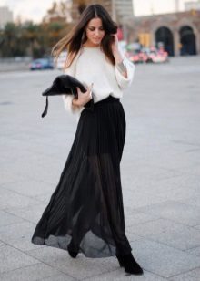 Immortal classic. Black skirts of any length and style look fashionable, stylish and seductive. But within the framework of current trends, I would still like to say: if black today - then a translucent maxi to the floor! This is the most seductive and fashionable model at the moment.