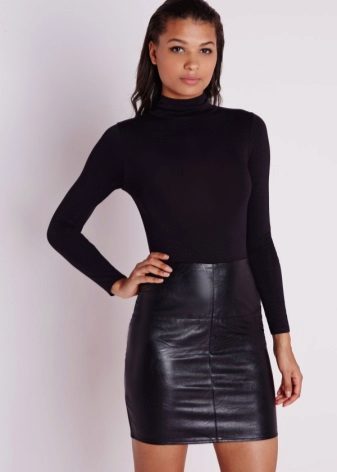 The shorter the skirt, the stricter the top. A perfect pair of turtleneck, shirt or jacket.