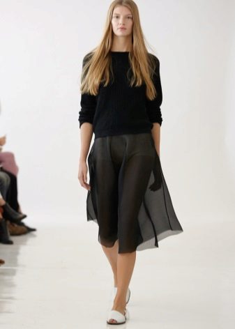 Transparent fabrics allow you to admire the graceful legs of a fashionable woman, dressed in them. But at the same time they are not completely open, which speaks of chastity and a sense of style of the girl.