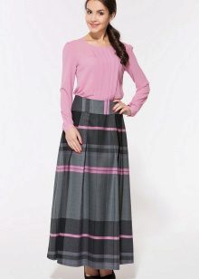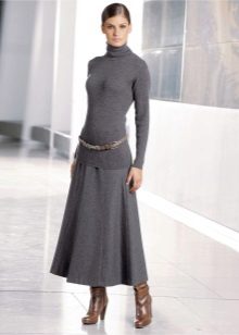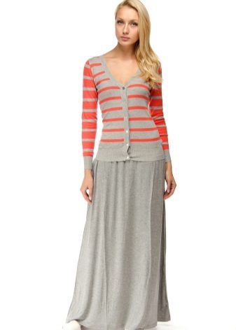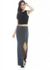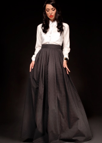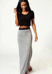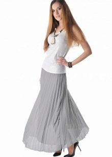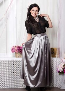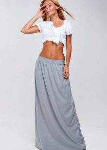 A gray long skirt is a great choice for everyday wear. Many fashionistas prefer to wear a chiffon skirt with a top or a T-shirt decorated with an original pattern. A leather jacket is a complement to the look. Many girls choose a gray long skirt made of dense materials for every day.