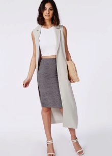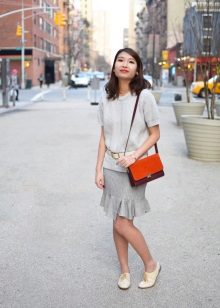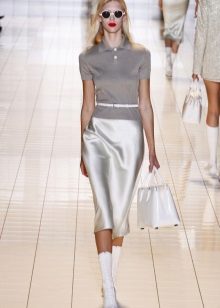 To attract attention to yourself, and not to clothing, you should wear a gray skirt with a top in white, gray or black. Thus, you can create a silhouette in minimalism.
