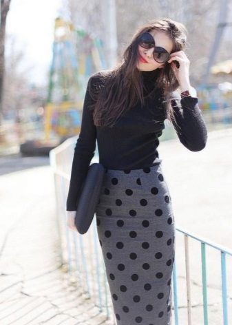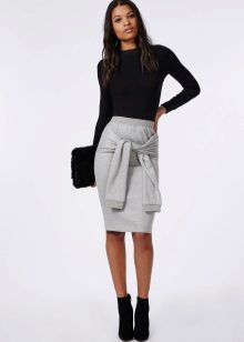 A gray pencil skirt can perfectly be combined with white blouses or shirts, stylish plain turtlenecks. On cool evenings, you can complement the look with a plain jacket or jacket.
