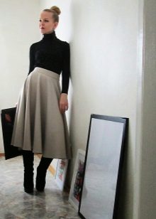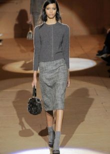 In the cool season, a sweater or sweater is often worn with a skirt. Such a tandem looks stylish and beautiful. A gray skirt is perfectly combined with different styles of sweaters, because it is only a background that can be decorated with bright colors. If you wear a gray skirt and sweater, then the emphasis should be shifted to accessories or shoes.