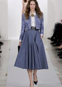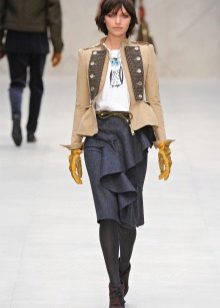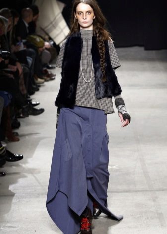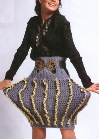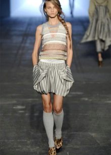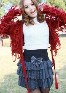 Vintage lovers can take a closer look at the gray ribbed woolen skirt. It is an excellent basis for the embodiment of interesting images. An ideal complement would be an elongated cardigan or a short jacket. For authenticity, a fashionable beret can be worn on the head.
