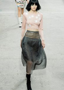 When choosing the top, you can stay on the vest, stylish, comfortable and practical. Designers suggest combining sports-style skirts with tops, t-shirts or sweatshirts. Such an outfit is suitable for a walk or outdoor recreation.