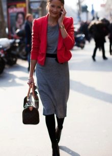 Do not limit your choice. You can wear your favorite color top with a gray skirt. Green, red, coral, raspberry, blue blouse or sweater will help to show individuality. The gentle combination of gray and blue, which is so often present in nature, can be transferred to clothes.