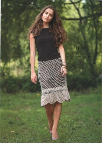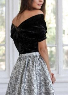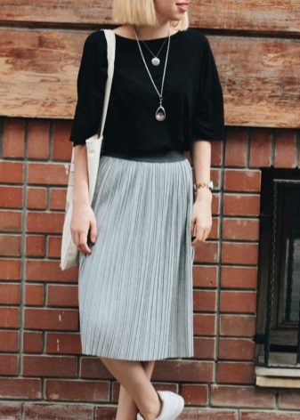 The gray skirt blends nicely with a snow-white blouse. Tenderness and romance is felt at first sight. To embody a business image, you can wear a black sweater or blouse with a gray skirt. Jewelry on the neck will be a bright accent.