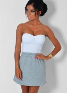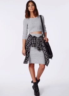 For a mini skirt, you should choose seductive blouses and tops. An excellent addition will be a knitted cardigan of their thin yarn.You can choose the top of silk or lace. With a gray skirt, light colors will look beautiful.