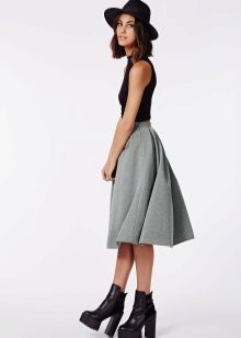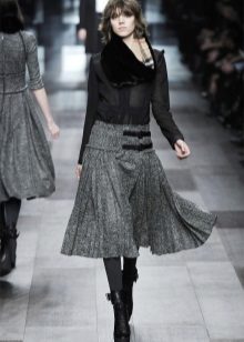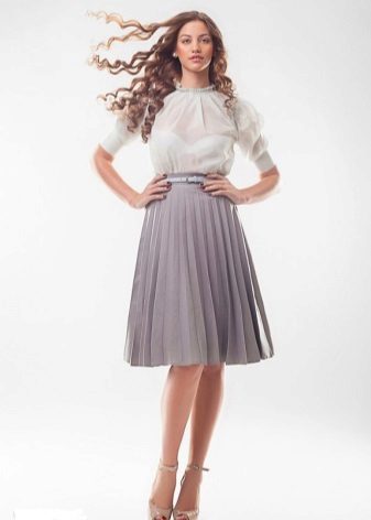 The sun skirt is present in the wardrobe of many girls, because it refers to universal things. But it is the gray skirt that gives girls more opportunities to create an unforgettable image.