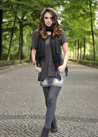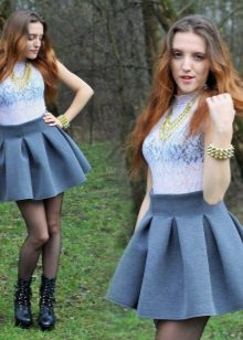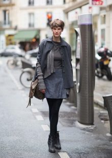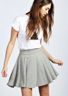 A gray mini skirt always looks feminine and playful, except for straight-cut skirts. You can add playfulness with the help of quilling, frills, prints and other decorative elements. Even the gray color will not change the impression of a short skirt.