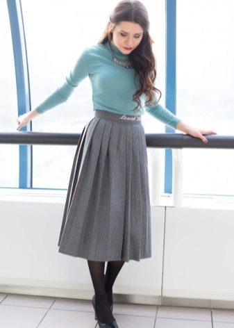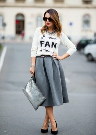 A gray skirt is perfectly combined with different styles of sweaters, because it is only a background that can be decorated with bright colors. If you wear a gray skirt and sweater, then the emphasis should be shifted to accessories or shoes.