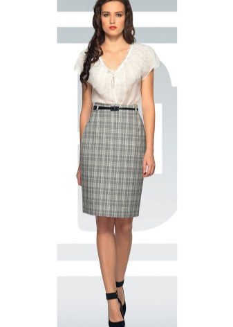 To embody a business image, you should wear a light gray straight-cut skirt with classic blouses in white, blue or lilac. A classic of the genre is the black top.