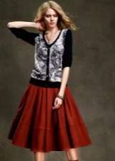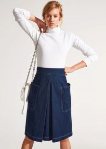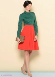 Skirts with counter pleats made of thick materials are often worn as an element of a business suit. In this case, they are well combined with formal shirts or more informal blouses (depending on the dress code), turtlenecks or cardigans.