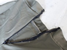 - Having sewn a belt, we sew a secret zipper in the middle seam of the product. Then we sweep and grind the middle seam.