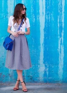 Those who prefer a flat sole can wear elegant slippers without a heel, ballet shoes or even sneakers for such a skirt.