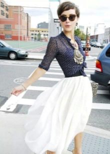 For owners of a boyish figure (flat chest and narrow hips), such a skirt will be a great way to make forms more feminine. But in this case, you need to choose a suitable top so that as a result you do not turn into a neat triangle.