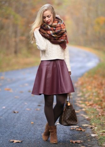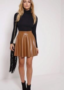 A flared skirt made of leather looks very advantageous, since some roughness of the material is balanced, due to the soft, romantic silhouette of the product.