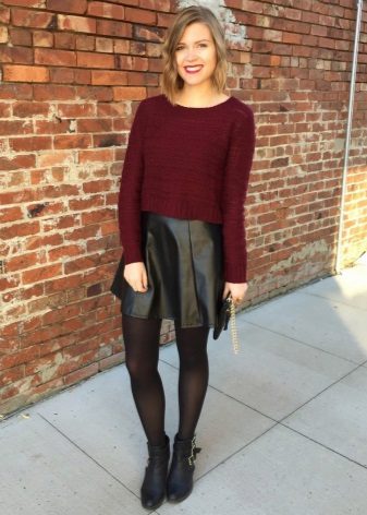Today, leather and leatherette are some of the most relevant materials. If earlier they were used mainly for sewing shoes and outerwear, now in the stores there are whole collections of leather dresses, skirts, trousers, cardigans, etc.