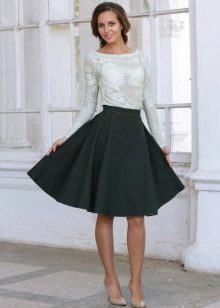 A green skirt-sun looks very impressive even in combination with the most concise top, for example, with a white shirt or with a black turtleneck.