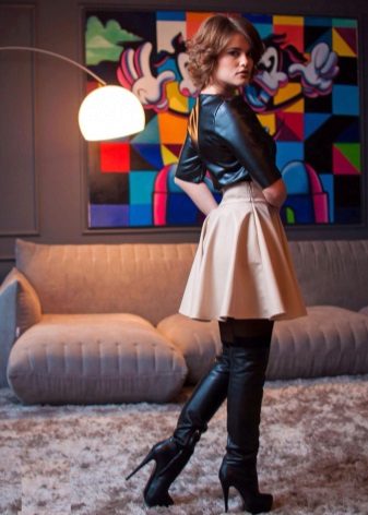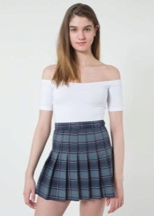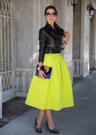 In the cool season, such a skirt can be worn with a shortened jacket, cardigan or fitted sweater. A denim or a leather jacket stylized as a leather jacket will also be in place.