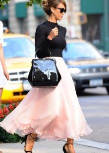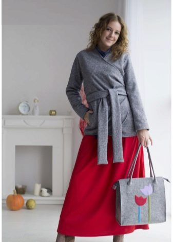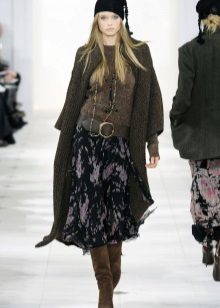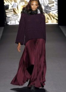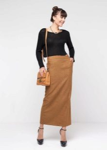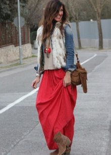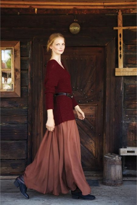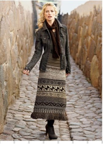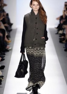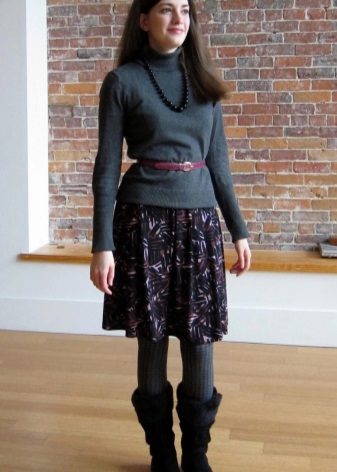 Skirts made of warm fabrics can be worn with cozy knitted sweaters, turtlenecks, sweatshirts with funny prints, cardigans and vests. Outerwear can be any, but stylists recommend combining long skirts with a short top, and short ones with a longer one.