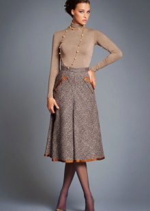 The most popular models of warm MIDI skirts are the “pencil”, “trapeze”, “sun” and “half-sun”, as well as the “bell”. Such styles are very feminine, they perfectly emphasize all the advantages of appearance, provided that the model is selected according to the type of figure. Skirts made of dense materials look good on a wide yoke or corset belt.