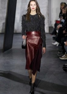 Autumn skirts are sewn from denser fabrics than summer models, but not from such heavy ones as winter ones. Usually it is denim, leather, velveteen or jacket fabric. Skirts made of such materials go well with raincoats, trench coats, and coats - regular outerwear for the off-season.