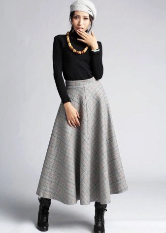 - A-line skirt - A classic kind of warm skirt. Usually has a midi or maxi length. Suitable for chubby girls, as it disguises extra pounds in the hips, thanks to a slightly flared silhouette.