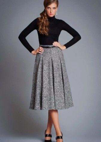 For many girls and women, medium-length skirts are considered the most comfortable clothing for the cold season. They warm well, but, at the same time, allow you to actively move. Skirts to the knee, a few centimeters higher or lower, look equally good with both high boots and boots or ankle boots.
