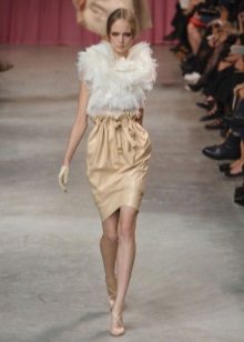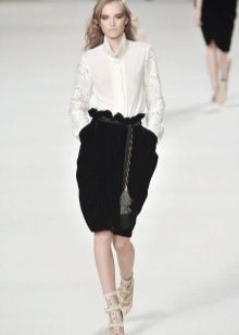 The Valentino collection presents this style of skirt in bright red. Karl Lagerfeld in the luxurious Chanel collection shows off a mini-length tulip skirt that has much in common with Indian clothing.