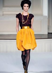 The tulip skirt is characterized by a free form, so women often choose it to adjust their shape. For example, the owners of a T-shaped figure with the help of this style will be able to create a proportional appearance, because this skirt gives volume to the hips.