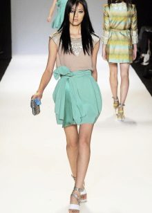 To convey the shape of a spring flower, the skirt may not have a smell. Now the volume in the hip zone can be created thanks to pockets, the use of several layers of fabric, light folds, draperies and other stylish decorative elements.