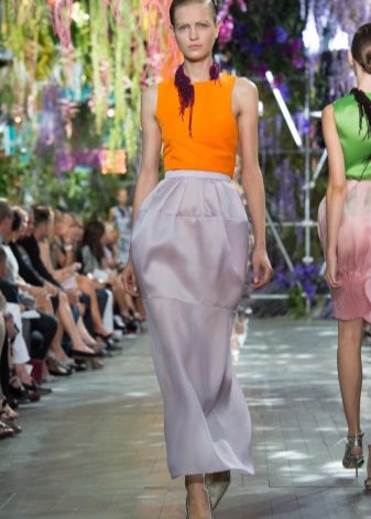 For sewing summer skirts, designers use silk, satin and other fabrics that are characterized by a smooth texture and are thin.