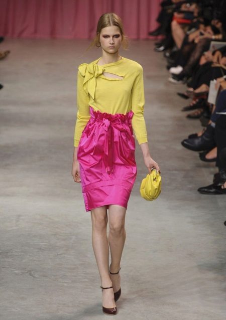 Famous designers offer luxurious collections for the summer, delightful models of this style are presented. The variety of tulip skirts is fascinating and surprising. For example, Roberto Cavalli focuses on a tulip skirt made of thin fabrics that gracefully fall down.