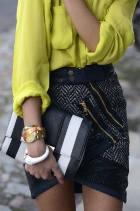 For the summer period, it is preferable to choose bright and joyful shades. For example, the tulip skirt looks very beautiful in green, bright red, yellow or turquoise.