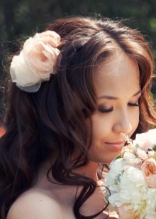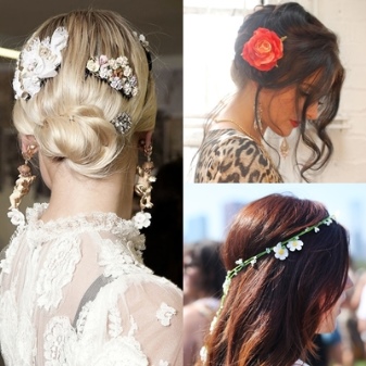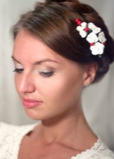 A beautiful hair clip with a flower is perfect for romantic natures. It is considered the best decoration for children and girls. Such a hairpin in a wedding hairstyle looks most perfect. And if the flower matches the shades of the wedding bouquet, the outfit will be perfect.