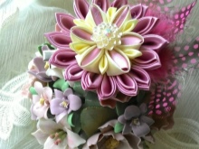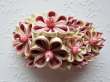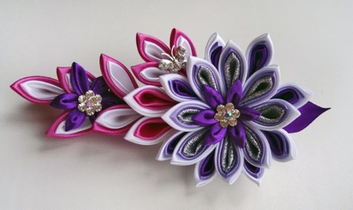 One of the most interesting and painstaking techniques. Today, this type of needlework is very popular. Kanzashi is the process of creating floral arrangements from a material cut into individual squares. More often, flowers are made of satin, organza, often wide satin ribbons are used to create a flower.