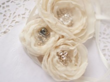 Accessories for special occasions are decorated with feathers, lace inserts and fur. Sometimes they are complemented by a microbead, sparkles and pearls. The middle of the flower may be of sparkling stone, crystals, small beads or a small brooch.