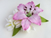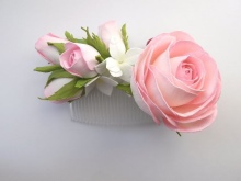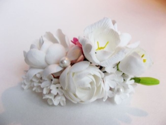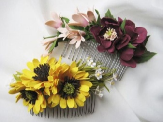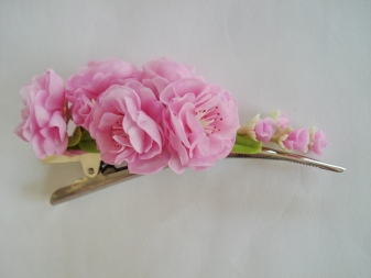 When creating hairpins, special devices and materials are used to help recreate the fragile texture of the petals. Often, products are real masterpieces that differ little from real flowers.