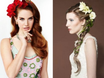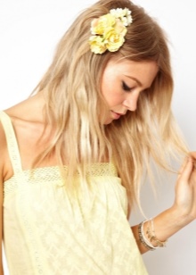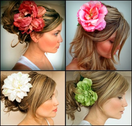 The size of the flower can be different: a small accent or a large one that covers most of the hairstyle. Such decorations are appropriate for the beach, the resort, a walk around the city, a summer party, a theme event, a prom, a wedding, an appearance.
