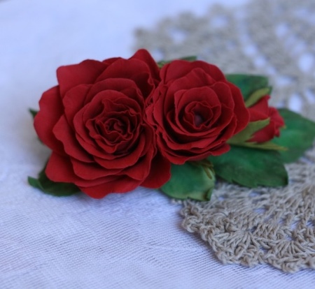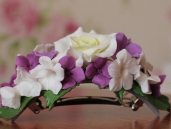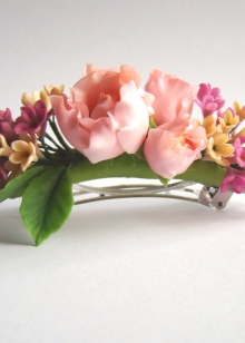 These accessories are no less elegant and beautiful.They are unique and impress others. Looking at such hairpins, it seems that they are made of thin textile. Polymer clay is easy to process and takes absolutely any desired shape. It dries quickly enough.