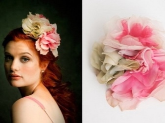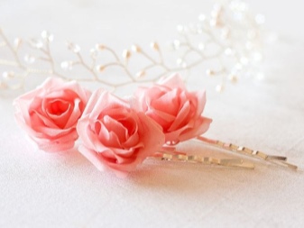 These accessories can be called the best variety of hairpins with flowers. The texture of the material allows you to give the form maximum naturalness. The fabric is impregnated with a special composition, forming veins in the petals.