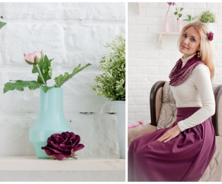 Hairpins with flowers look harmonious with summer clothes. They are relevant in combination with dresses, sundresses, blouses, lace tops and beachwear. Such accessories complement well cocktail and evening dresses, they are recognized as the perfect decoration for a wedding hairstyle and look great with a wedding dress.