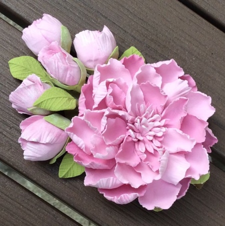 The desired shade and color intensity can be obtained using acrylic paints. Such flowers turn out realistic and very beautiful. The weight of the flowers does not burden the design and does not create discomfort when worn.