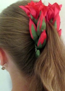 A “harness” made on the basis of a ponytail will look very beautiful. To do this, you need to comb your hair properly, and then twist it into a tourniquet. You need to stab the tail, of course, with the Banana. At the ends, the hairstyle can be a little disheveled, but you don’t have to worry, it will only add tenderness to her.