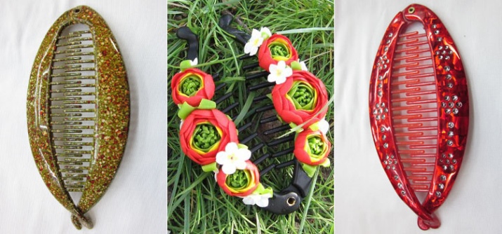 Such hairpins are made of metal, wood or plastic. In addition to standard models, there are real designer creations richly decorated with stones and rhinestones. “Bananas” can also be seen in collections of global brands such as Dior and Chanel. Here, craftsmen can decorate the product with their own logo or even make inscriptions on the entire surface of the accessory.