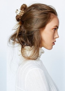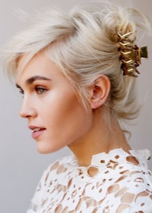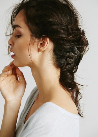 For fast home hairstyles, the most common plastic crabs are suitable. The easiest way to fix the curls is to collect them in a bundle, twist in one direction and hold it with a hairpin. Alternatively, instead of twisting, weaving can be used - to braid strands in a braid, lift it up and pull it together with a crab.